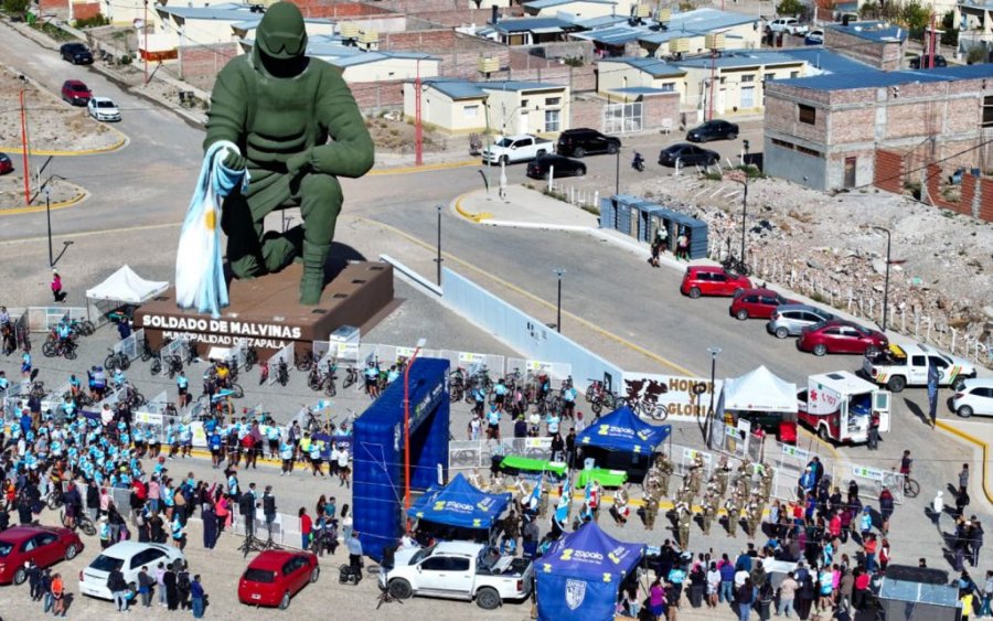 Allí la pasión de los deportistas fue observada de cerca por el imponente monumento al Soldado Argentino, que fue testigo de como la prueba se desarrolló con el aliento de cada uno de los presentes.